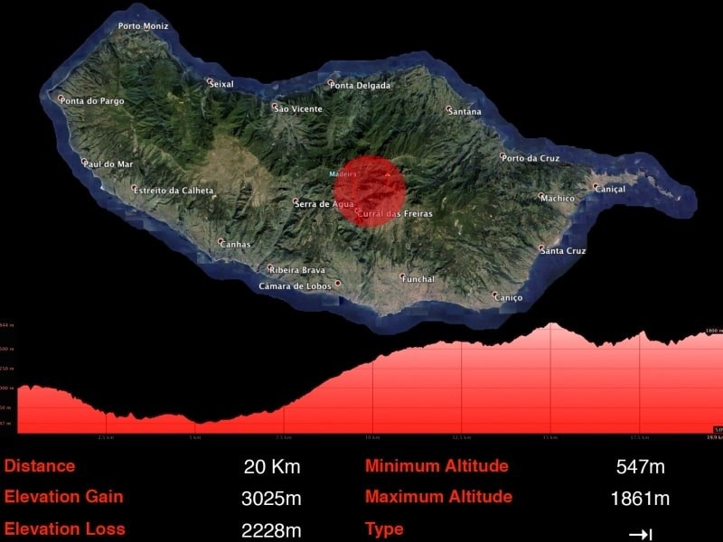Itinerário do Trail: Eira do Serrado – Curral das Freiras – Fajã Escura – Boca das Torrinhas – Pico Ruivo –Pico Areeiro